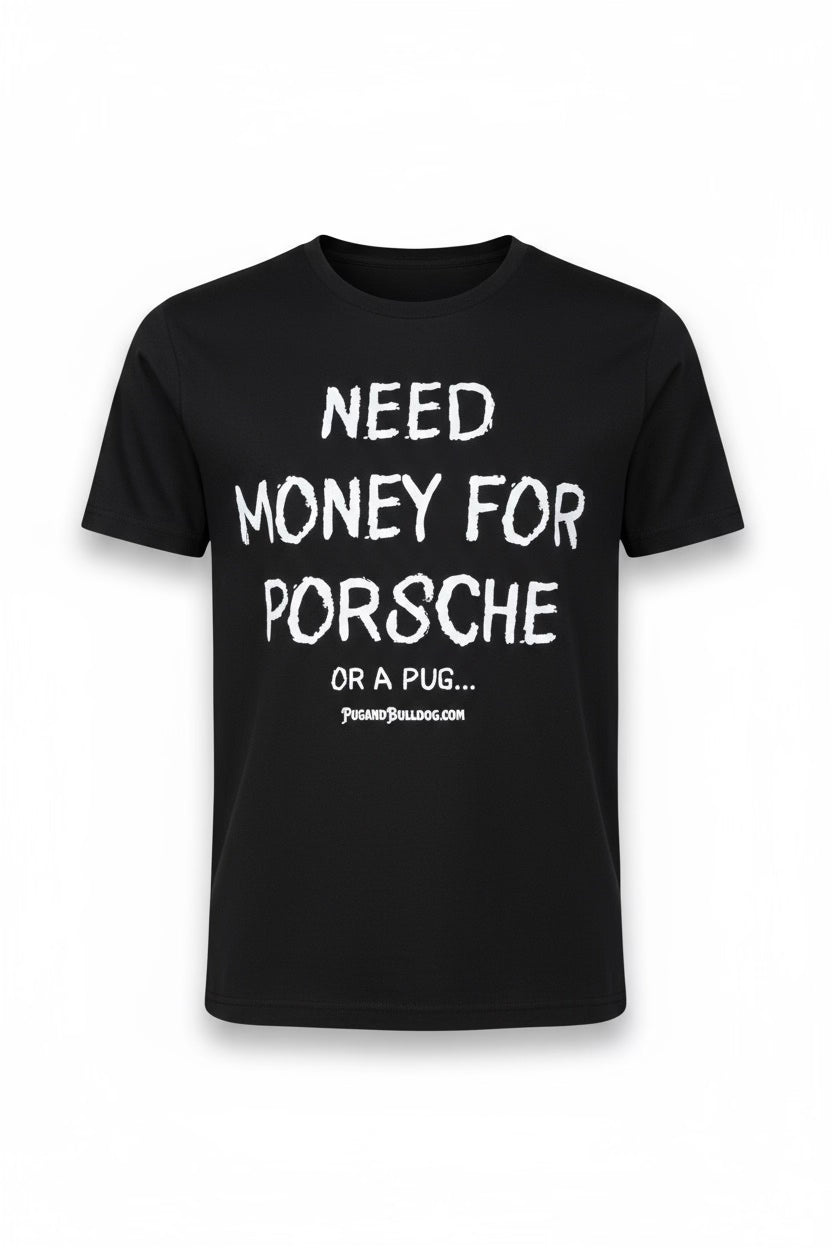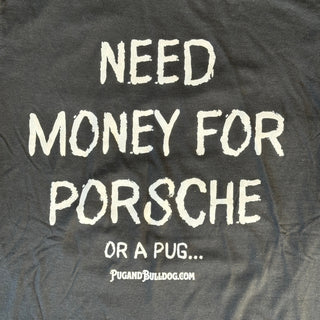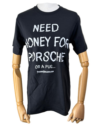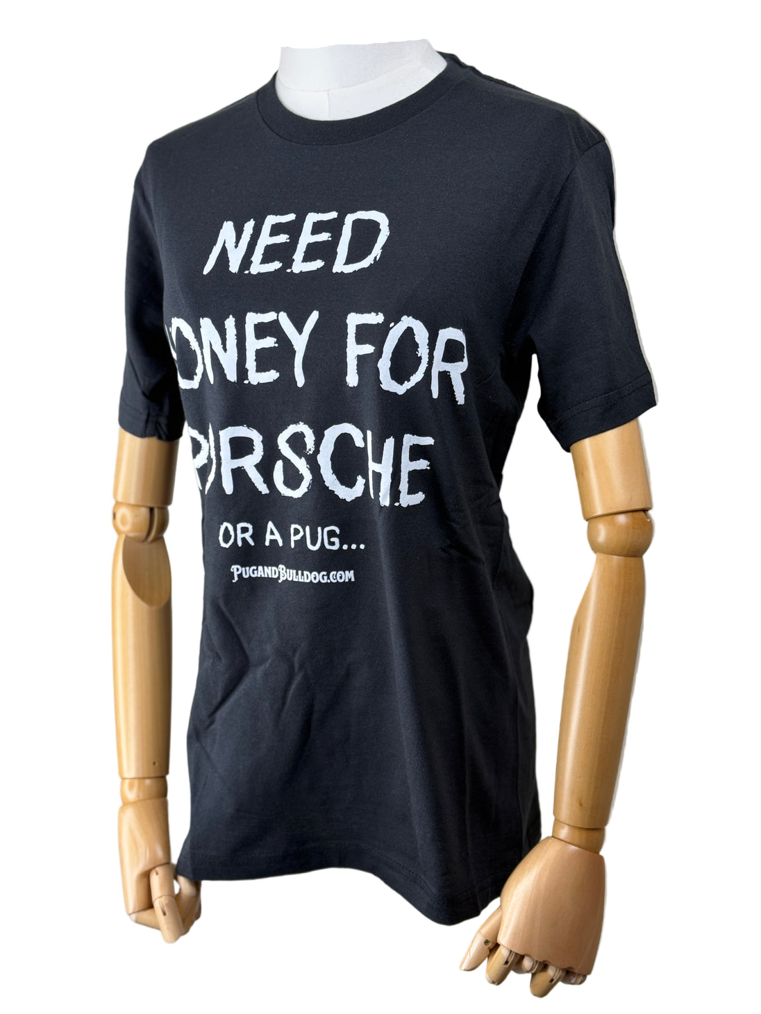This is our exclusive Porsche or Pug T-shirt. A Pug owners must have! Classic fit medium weight Black shirt in 100% Cotton. White graphics on the front only. Machine washable for easy care.