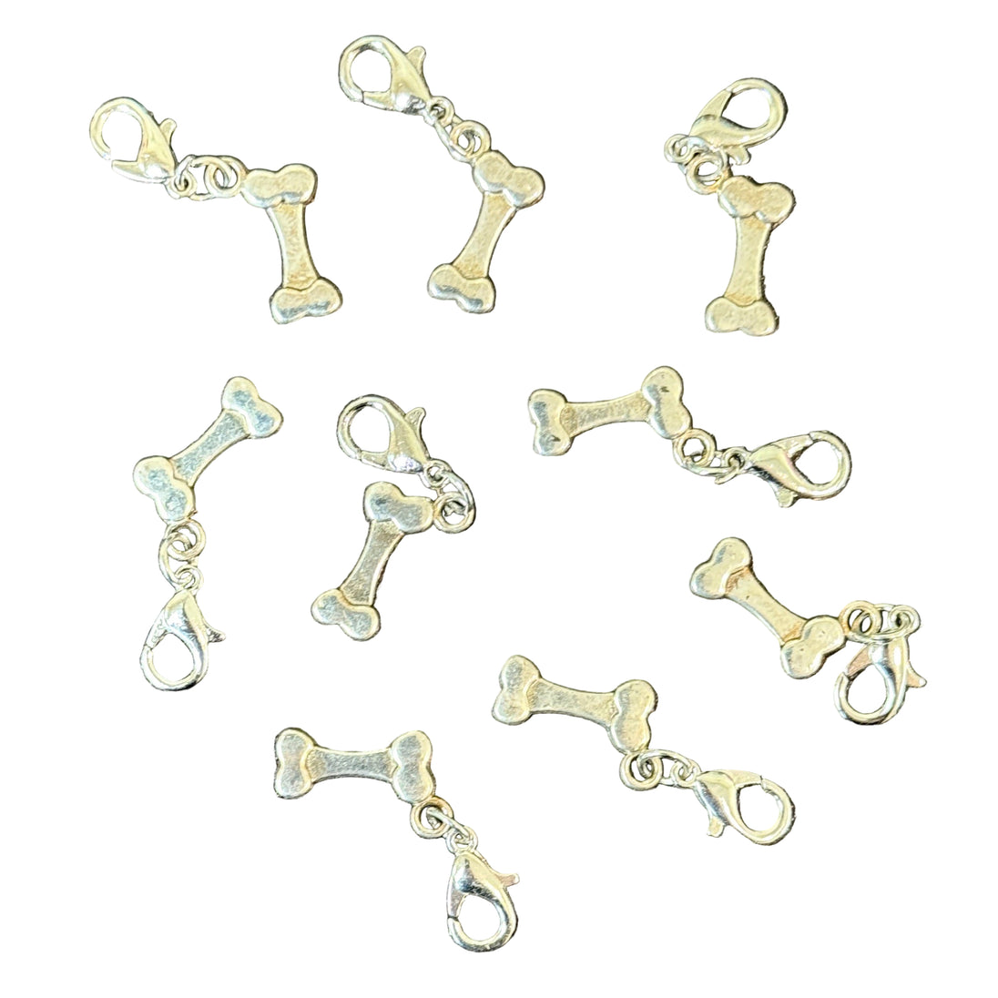 These are mini stainless steel Dog Bone charms. Each one has a lobster clasp to attach them to your keychain, bracelet or whatever you like. Each bone is 5/8" long not including the clasp.
