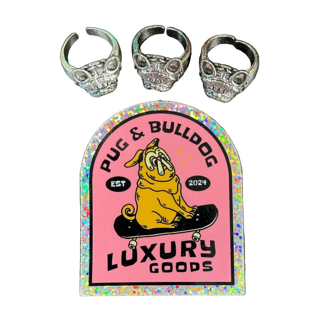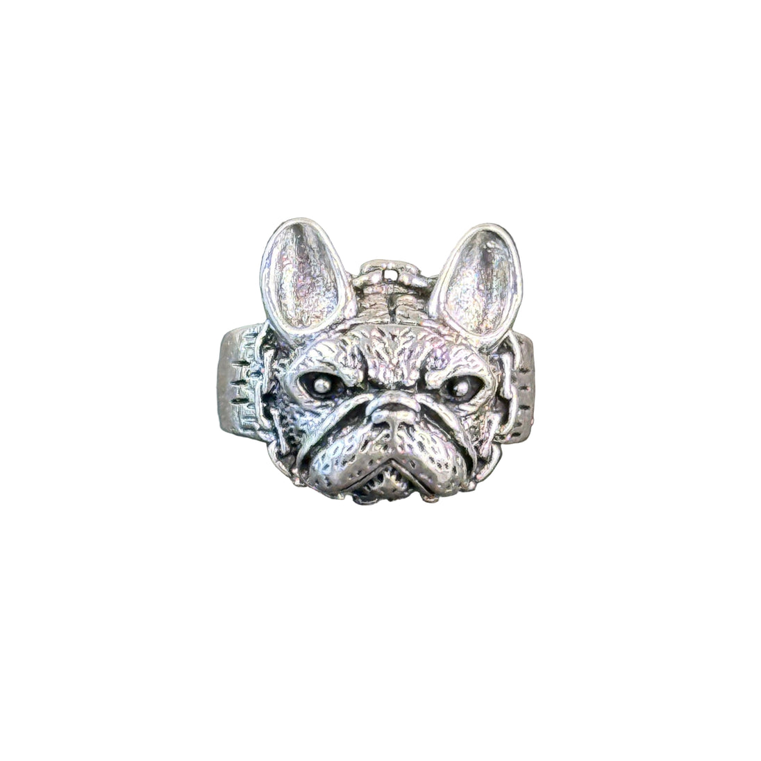 This solid Stainless Steel French Bulldog ring will get everyone's attention! Show your love of Frenchies with this adjustable cutie. Ships in a U.S. Size 8 1/2 but is adjustable.