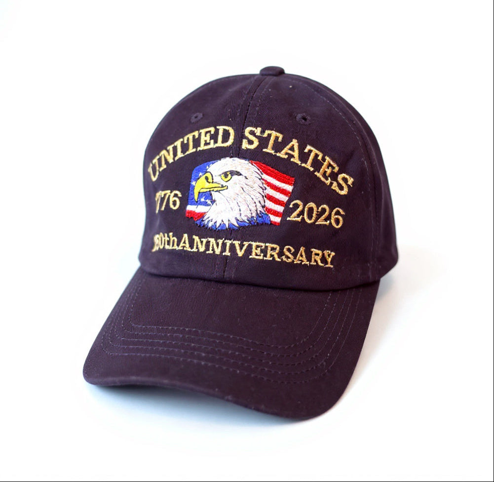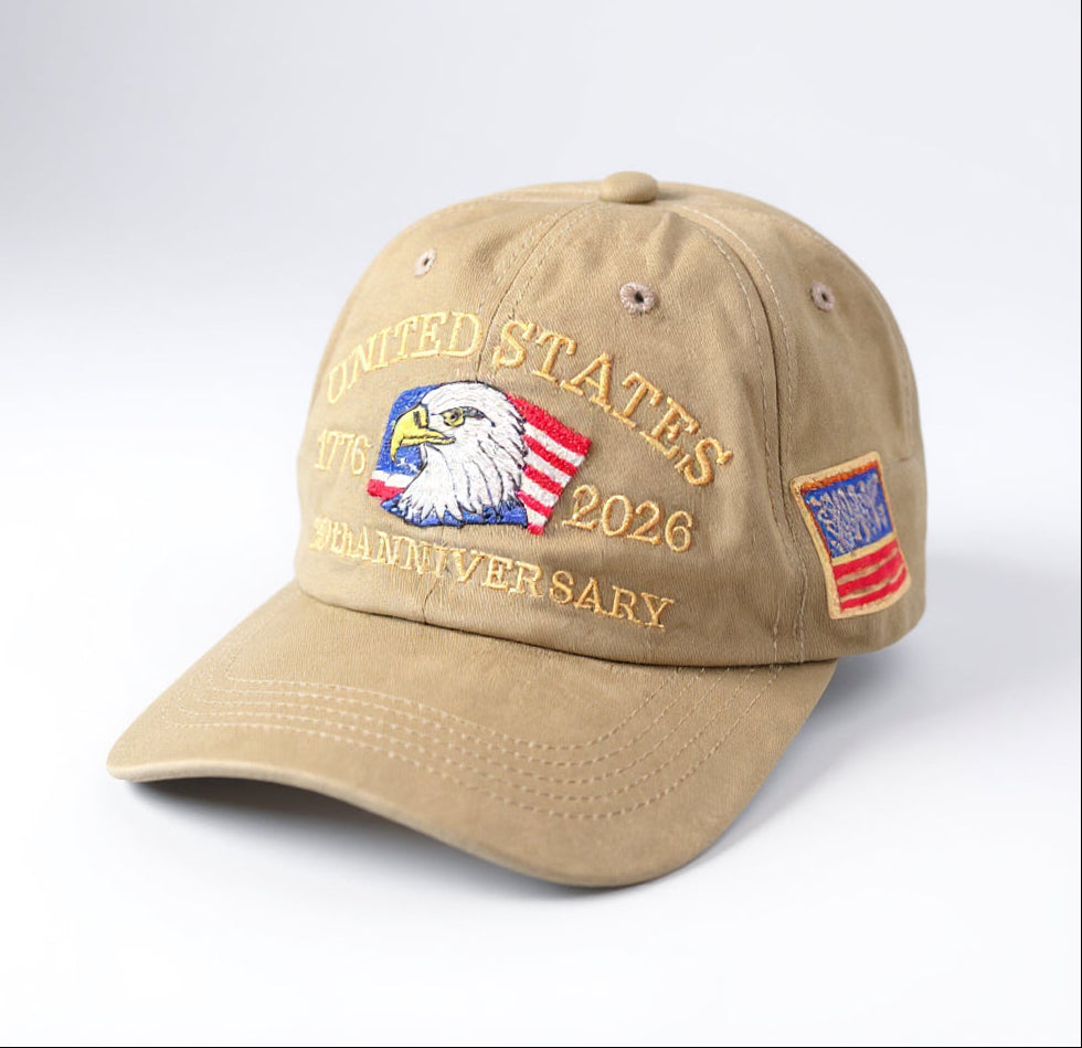 Our United States 250th Anniversary Embroidered Hat -Style B presents a restrained, elevated interpretation of this historic milestone. Featuring finely detailed embroidery of an eagle set against the American flag, the design reflects strength, tradition, and enduring national pride with understated sophistication.