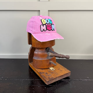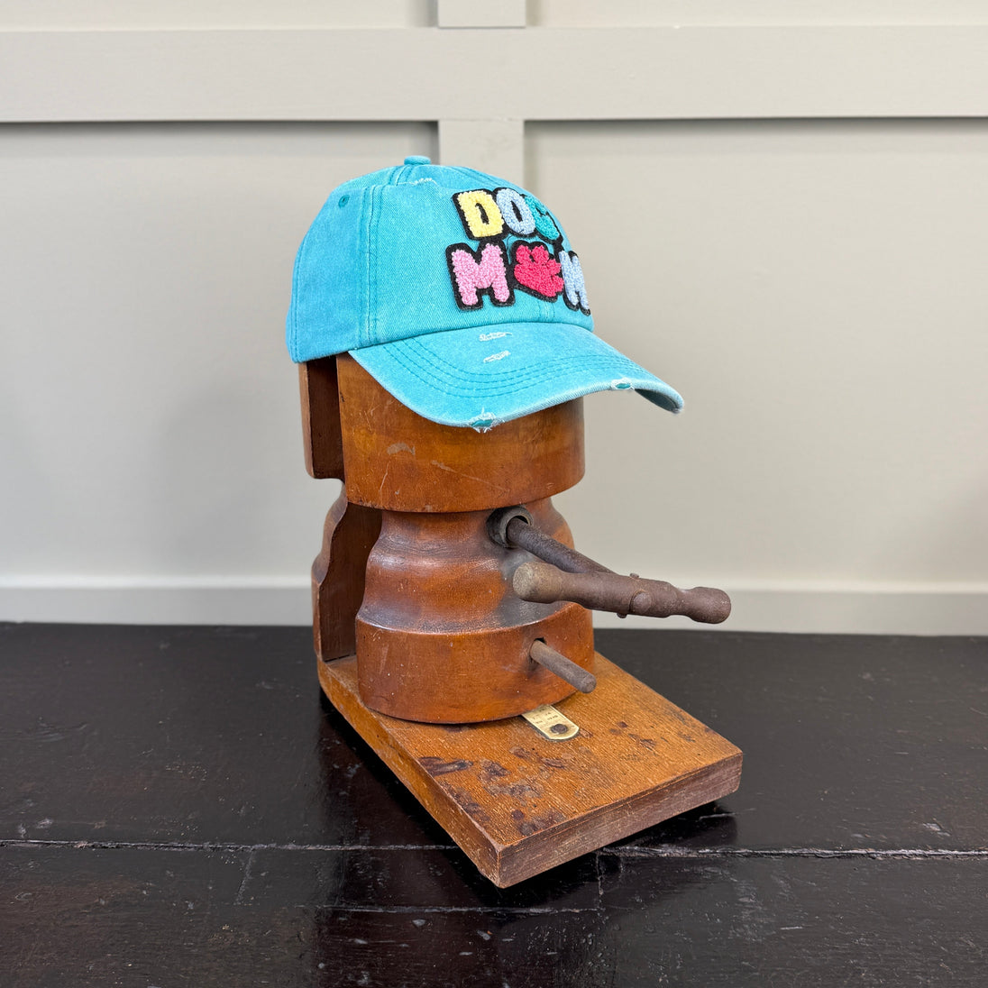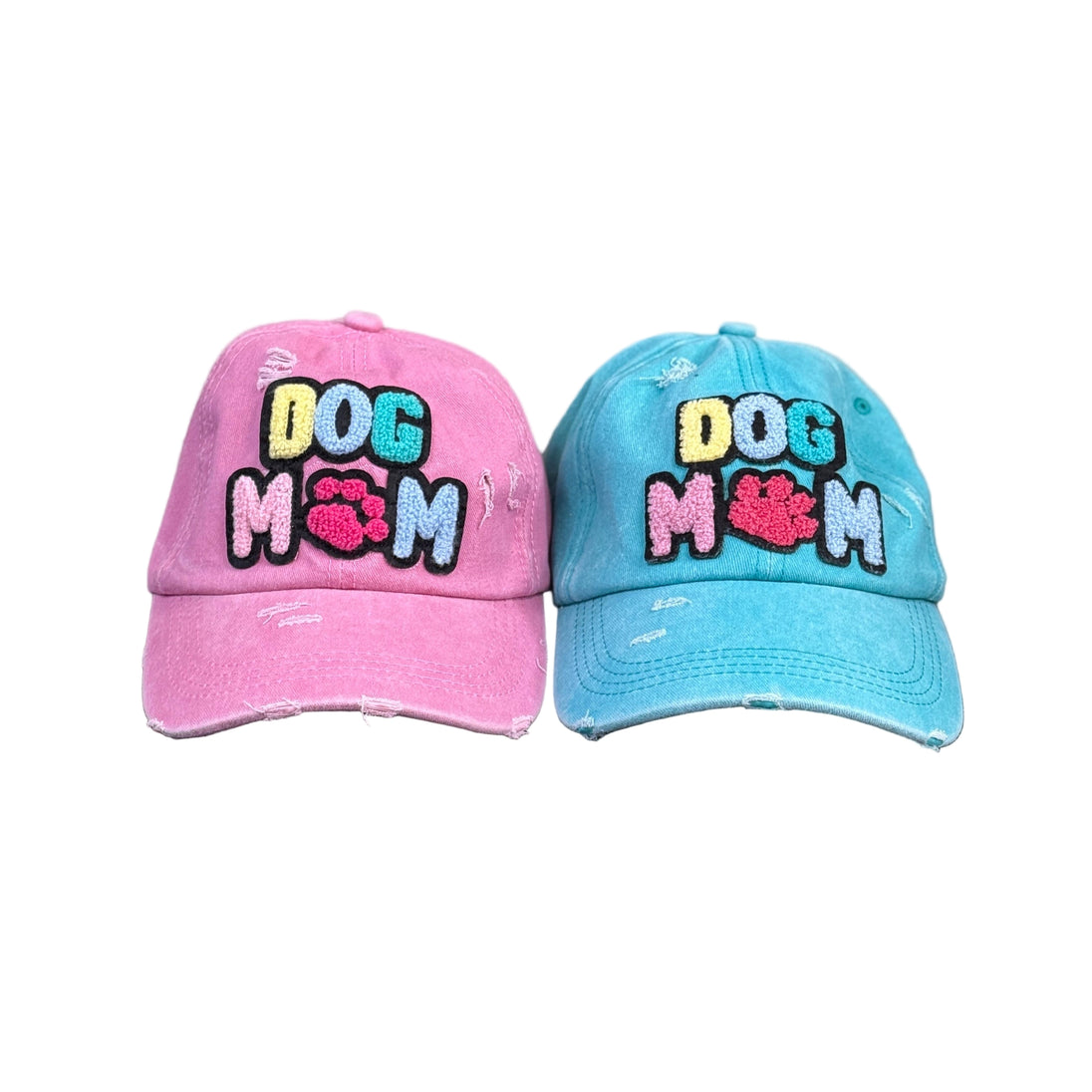 Our classic Dog Mom ball cap in your choice of Pink or Teal. Show your love for your furry children! One size and adjustable with the back strap. Each cap has Chenille Patch lettering on the front with our classic patch on the back. You will love this cap as it goes with everything. Made from 100% Cotton.