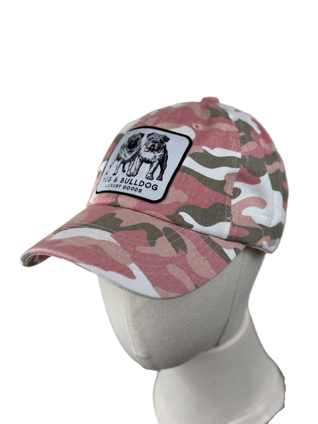 Our classic ball cap in pink camo! Headed to yoga class or errands around town this cap will keep you covered. One size and adjustable with the back strap. Each cap has our classic patch on the front. You will definitely get compliments on this cap. Made from 100% Cotton.