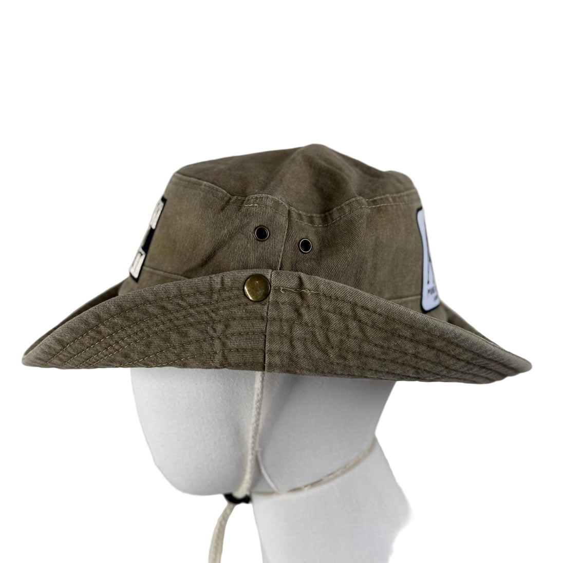 Whether on Safari in Africa or an afternoon in Central Park you need to have one of these. Sturdy heavy weight cotton with Brass snaps and reinforced vents. The front has our classic White logo and the back has one of our favorite "Whiskey Tango Foxtrot" patches. These are unisex and come in one size. Made from 100% heavy cotton. Each hat has a slide adjustable chin strap to keep it secure when evading the wild! Super durable and will last for years.