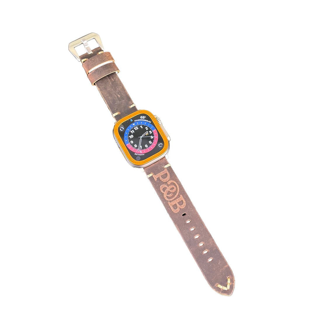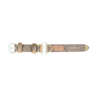 This classic Crazy Horse Leather Apple Watch band with our Signature P & B embossed logo is the perfect band for work or a weekend in Martha's Vineyard. Heavy duty leather with silver Buckle and fittings. The band width is 3/4". Fits Apple watch series 4 thru 9.