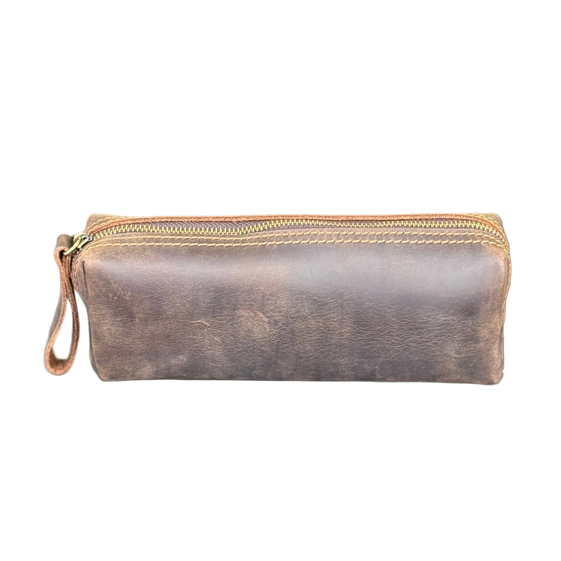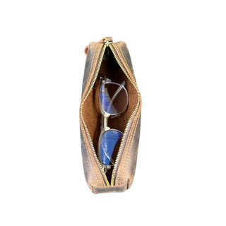 If you have been looking for the perfect Leather pouch for eye glasses, pens or to catch all the little things in the bottom of your backpack or briefcase then you found it! Made from Crazy Horse leather with a heavy duty brass zipper and a leather zipper pull strap. Made to be used daily with a patina that will improve over the years. Dimensions are 8" long by 3 1/2" high by 2" deep. Named after our much missed one eyed rescue Pug Sasha.