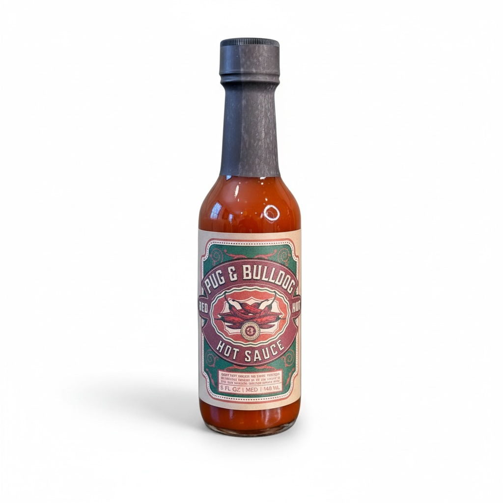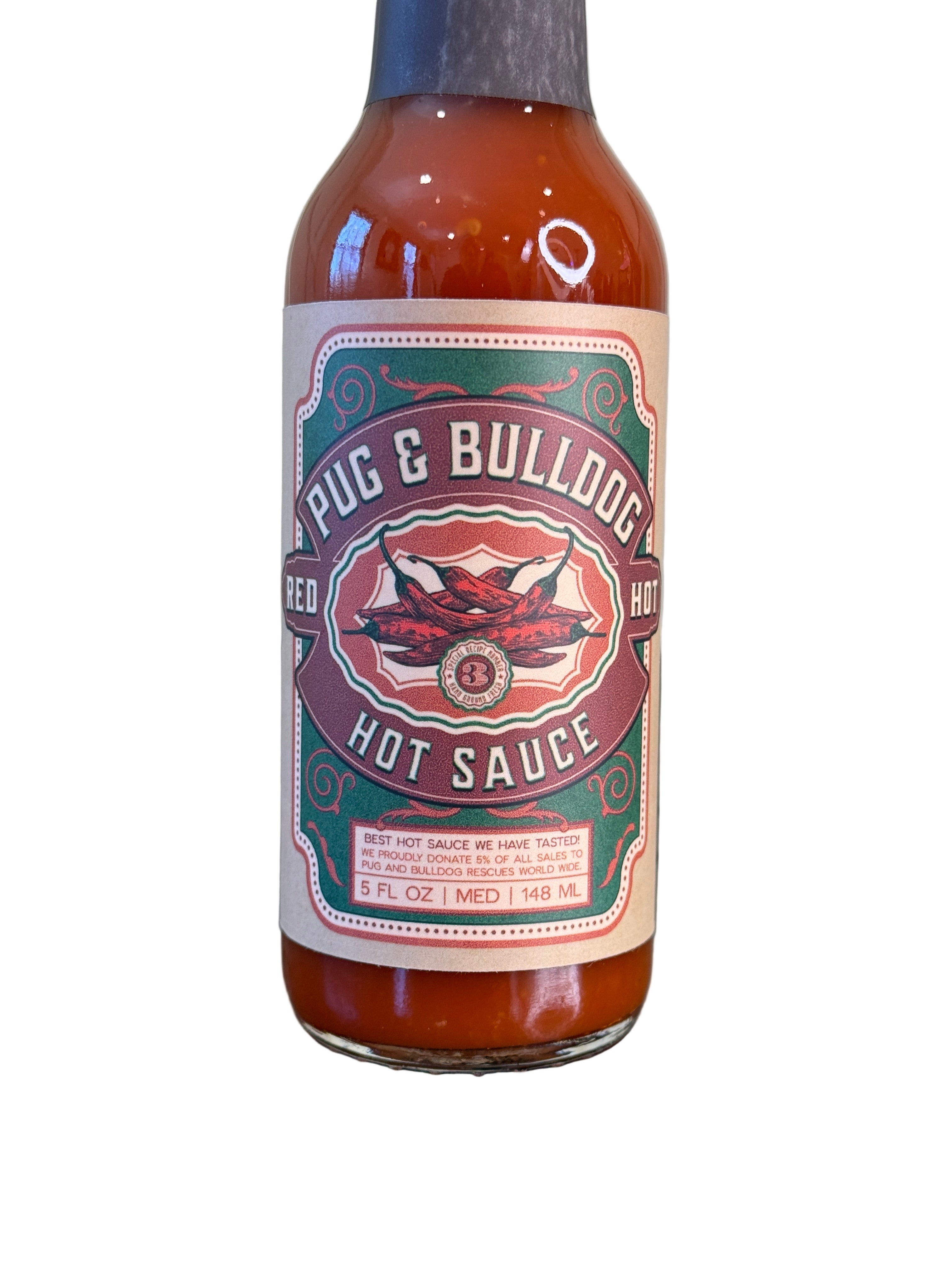 Our very own Pug & Bulldog Hot Sauce. The best Hot Sauce we have ever tasted! The perfect combination of medium heat with a sweet under tone that is smooth and yummy. You are going to love it on everything. 5oz Bottle