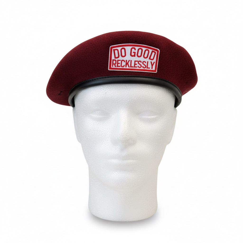 Sourced from authentic military issue from the 1980s and 1990s, these Vintage Wool Special Forces “Do Good” Berets embody a legacy of elite service and enduring craftsmanship. Expertly constructed from rich wool with leather trim, each piece was designed to meet the rigorous standards of the Special Forces.